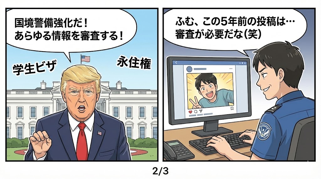 実際トランプ政権下で施行される大統領令によって、SNS情報提出が大統領令に基づく措置として正式な義務化となっているようです。
