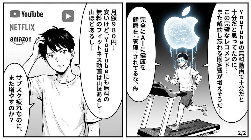 iPhoneだけあればトレーニングできるらしいが、AirPods Pro3やApple Watchがあるともっと良いということで、この手軽な入り口の背後には、ユーザーを自社製品の網目に深く引き込む計算されたプラットフォーム戦略が見え隠れする。