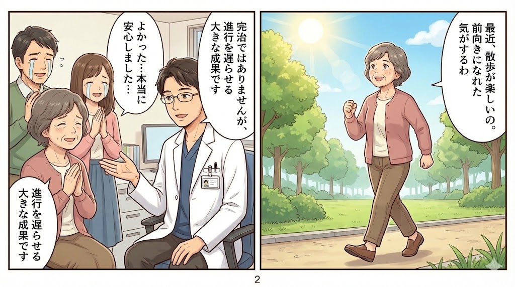 散歩を楽しむなど前向きな言葉も増え、患者や家族の希望につながっているのが伝わりました。