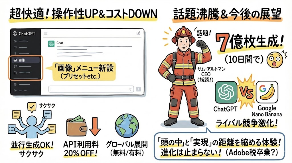 リリースと同時にAPIでの提供も開始され、ユーザーはゼロからの画像作成や写真の編集など、より直感的で便利な機能を体験できるようになりました。