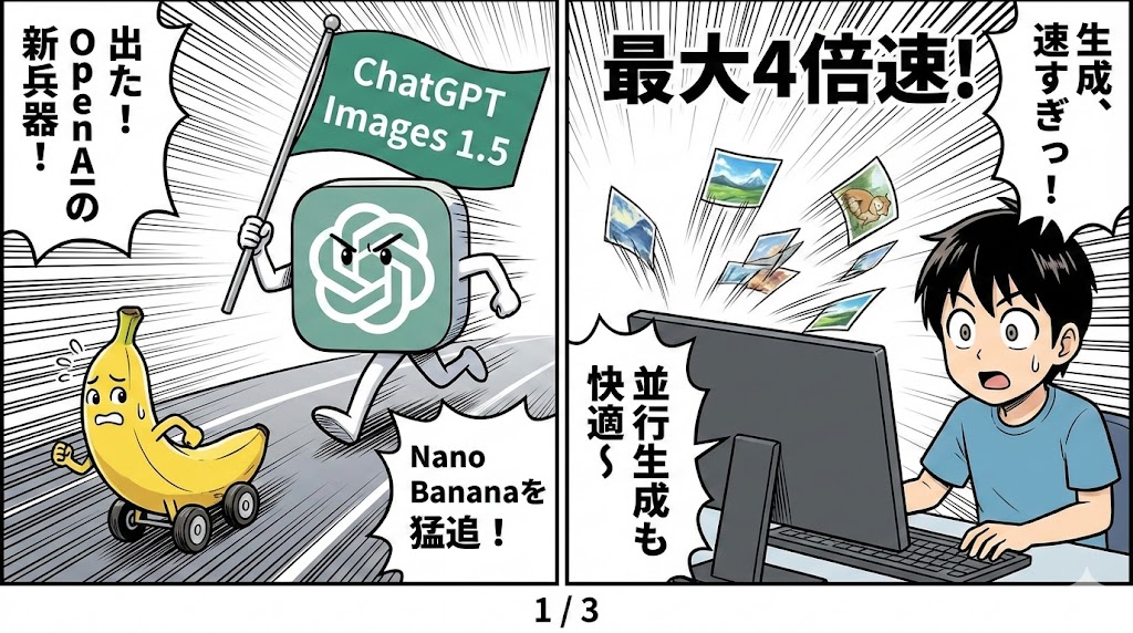 ライバルのGoogleも「Nano Banana」という高速画像生成AIを8月にリリースしていますが、ChatGPT Images 1.5の登場で勢力図も大きく動きそうです。
