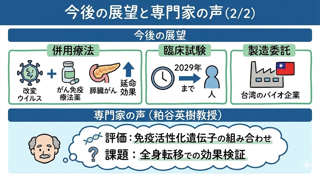 研究チームは臨床試験開始に向け、台湾のバイオ系企業へウイルス製造を委託したとのこと。