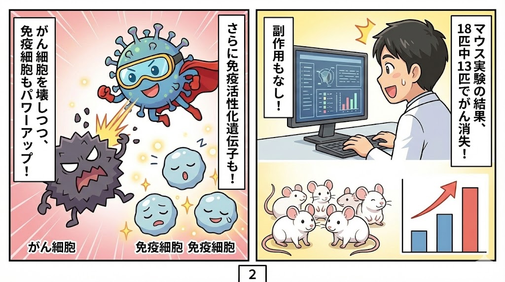 しかも、このウイルスは正常な細胞では増殖せず、がん細胞だけを攻撃する設計になっているというのが面白いポイントです。