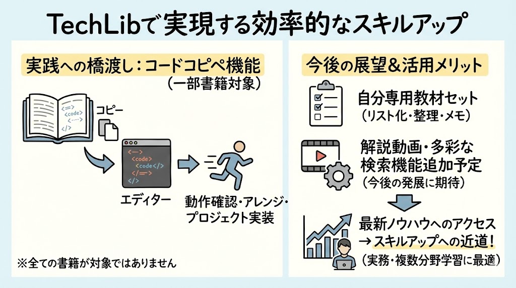 TechLibのような読み放題サービスを活用すれば、必要な知識を効率よく学べて、スキルアップへの近道になると感じる。