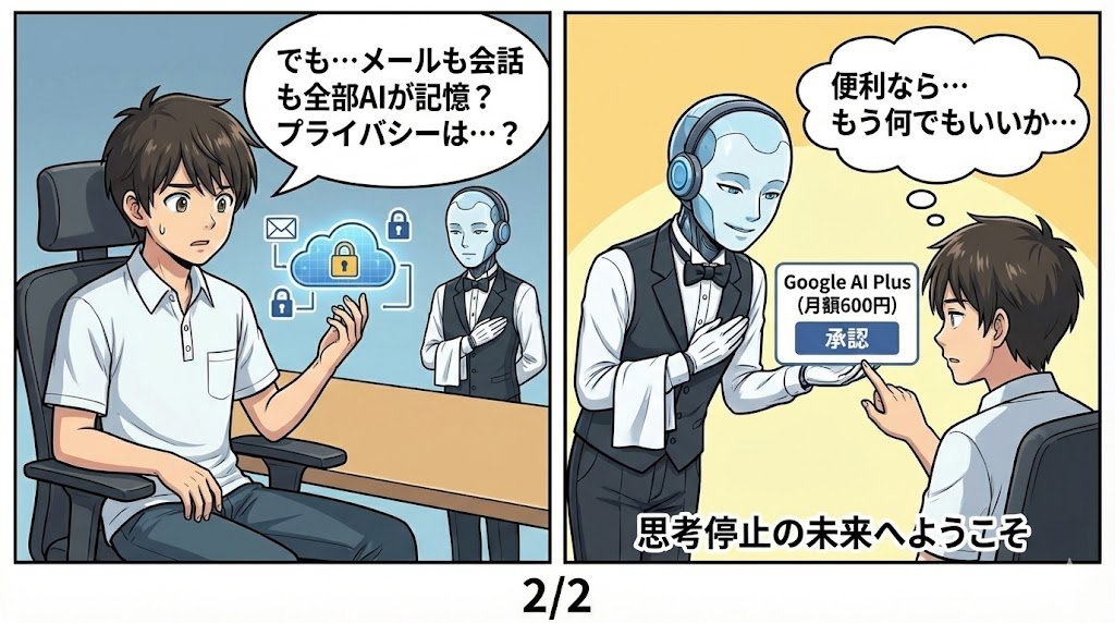 個人データとAI機能の深い連携(「Personal Intelligence」機能)は、利便性と引き換えに「プライバシー・パラドックス」、つまり利便のためにあっさりと自分の情報をAIに差し出す心理を極限まで試しつつある。